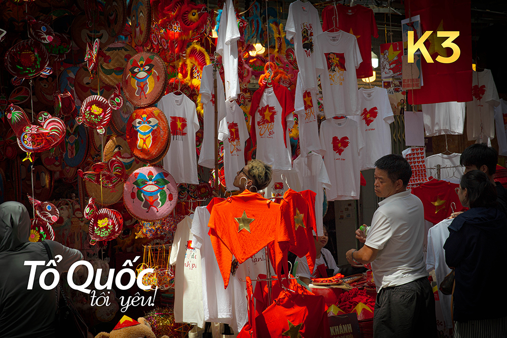 Những con phố nhỏ nhộn nhịp, treo đầy cờ Tổ quốc, đèn lồng, tạo nên khung cảnh vừa cổ kính, vừa rực rỡ. - Cột cờ Hà Nội – Điện Biên Phủ